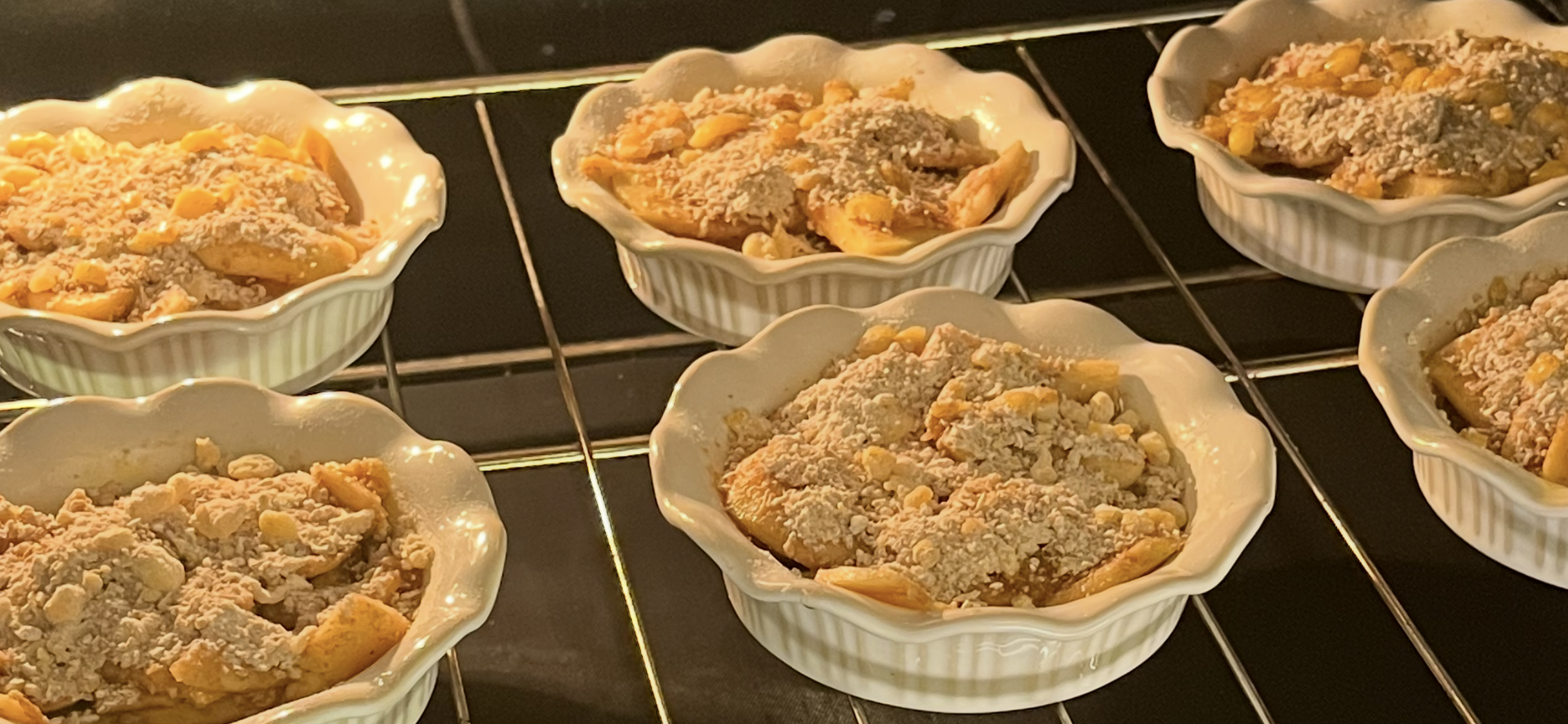 • 8. Bake the crisp on a baking sheet (just in case the filling bubbles over!) for 45-55 minutes, or until topping is golden brown and filling is bubbling.